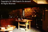 plywood with a dark aged pine ceiling. At night, the house takes on a whole